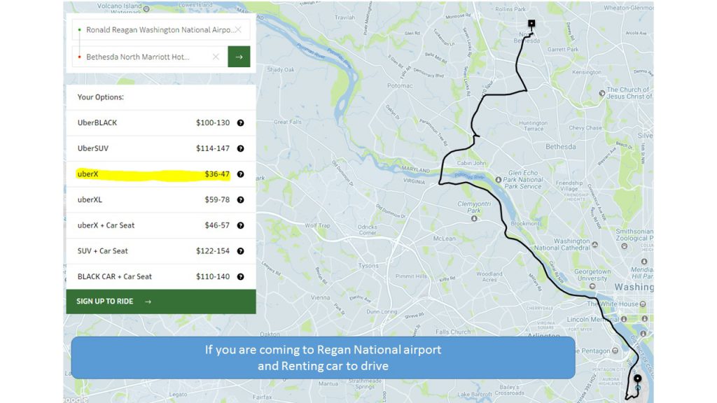 from Ronald Reagan National Airport to White flint is : Peak time $6.00 — Off Peak $3.85