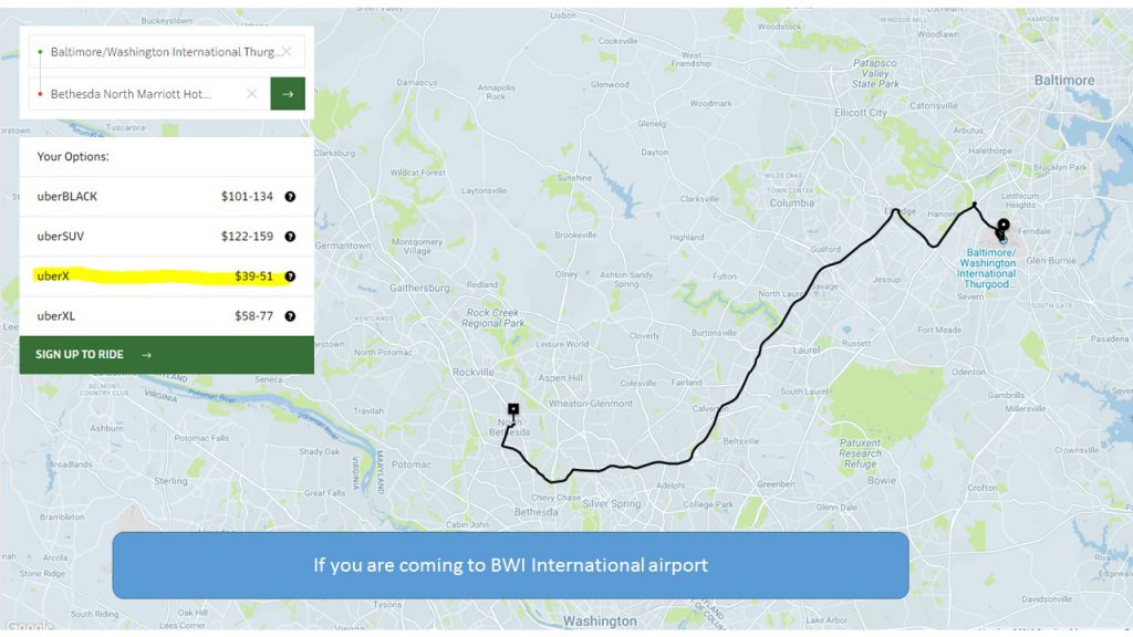 From BWI Internaltion Airport to SANA Hotel