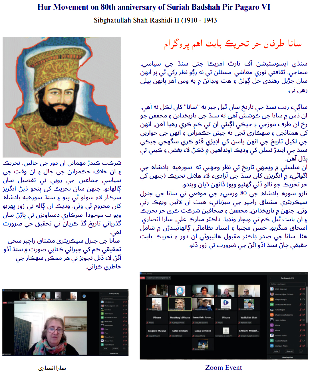 SANA-ARC Chairman Dr. Valeed Shaikh and Dr. Aijaz Turk represented Advocacy and right committee. SANA was represented by Asghar Pathan, Vice President USA, Khair Muhammad Kolachi former President GTA Chapter, Attaullah Mallah, President Edmonton Chapter, Attaullah Shaikh, President Washington DC, Syed Naqeeb Musavai former General Secratry Ontario Chapter, Dr. Shahid Qureshi, former President GTA Chapter and Sabrina Lakho, member from Chicago. Leadership and/or representative of main stream parties such as Sindh Tarqi Pasand Party, PPP, GDA, Awami Tahreek, Sindhiyani Tahreek, Qaumi Awami Tahreek, JSQM, Jeay Sindh Mahaz, JUI-F, Awami Jamhoori Party (AJP), Awami Workers Party, Sindh Vision and others shared their views on the issue.