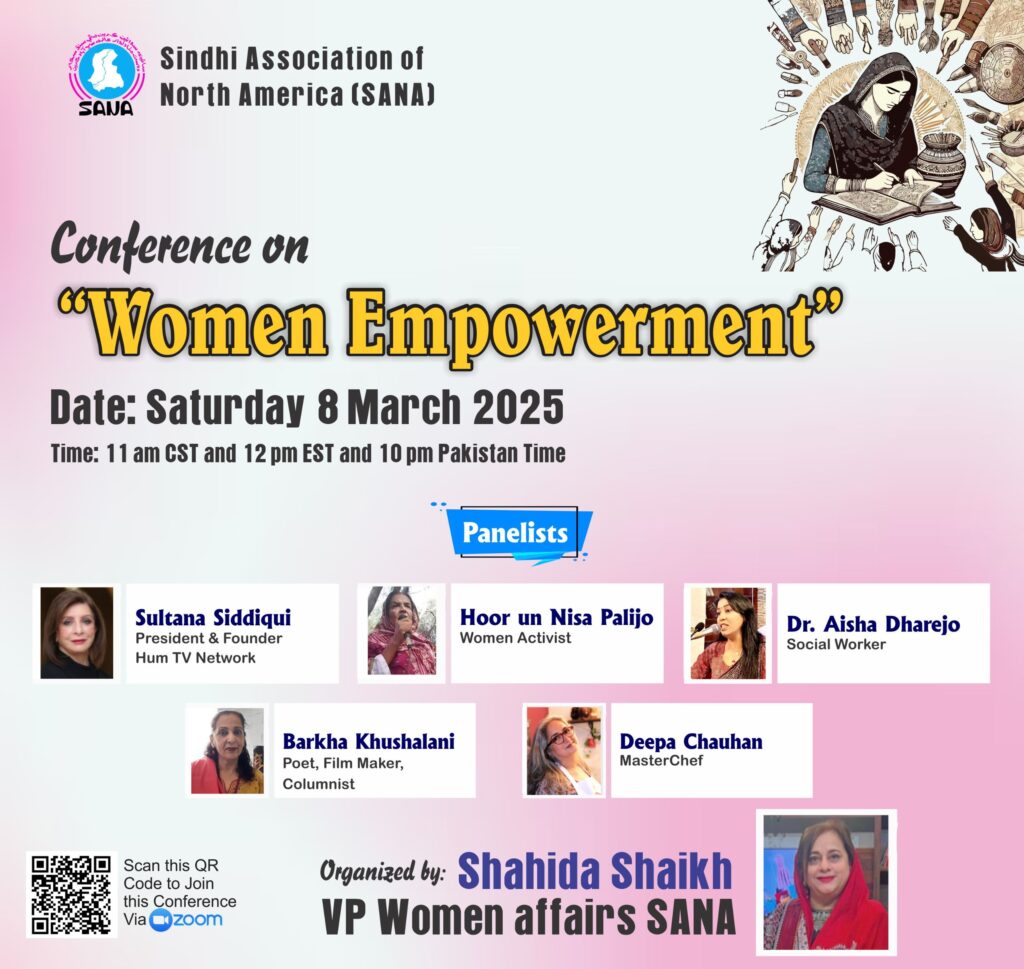 Shahida Shaikh, VP Women, SANA, is inviting all SANA members to attend the online seminar on “Women Empowerment” on the occasion of International Women Day on Saturday, March 08, 2025.